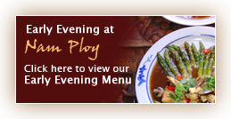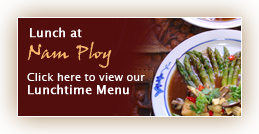 Nam Ploy’s food is freshly prepared to order and our food is famous for our enthuisiastic use and twist of fresh herbs and spices. All of our dishes possess their own character, whether it be, spicy, sweet, sour or mild - we have dishes that cater for everyone’s individual tastes.